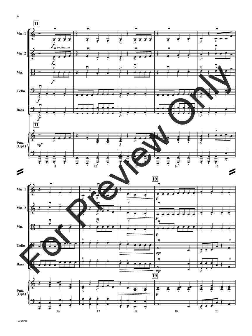 Designed to give students experience reading G and C string notes, this electrifying rock-style piece uses simple rhythms, accents, staccato, and changing dynamics for an exciting effect. Every section gets a chance to play the hard-driving melodies and an optional piano part adds extra support and percussive emphasis. Powerful!