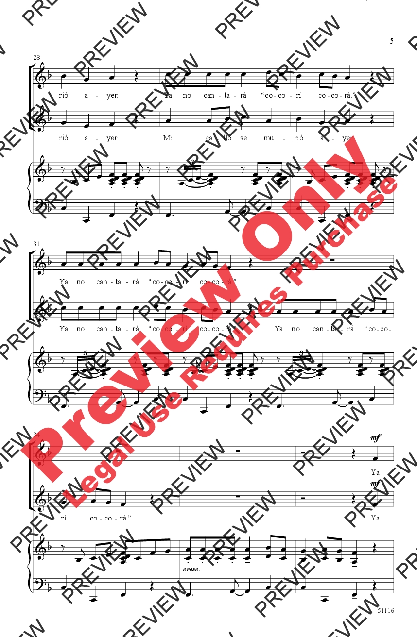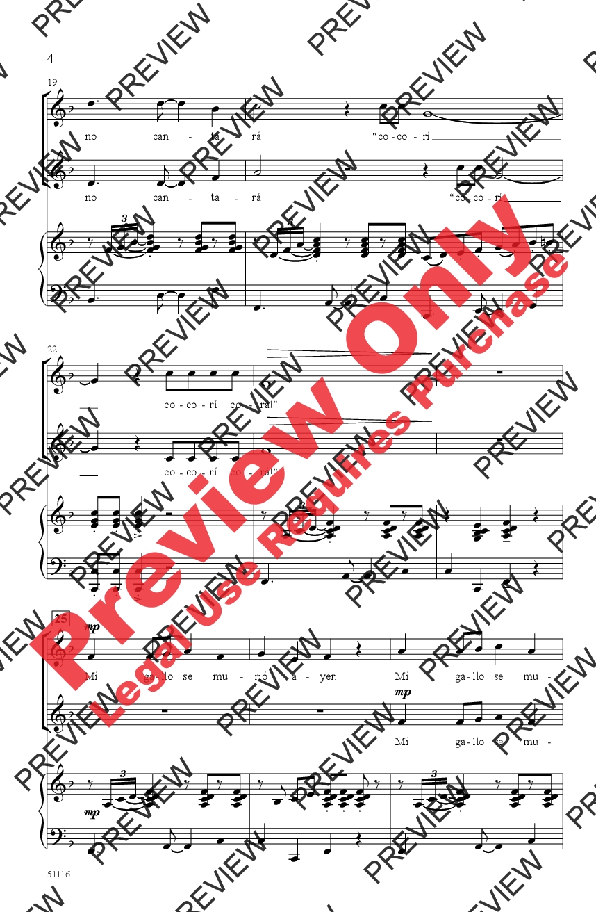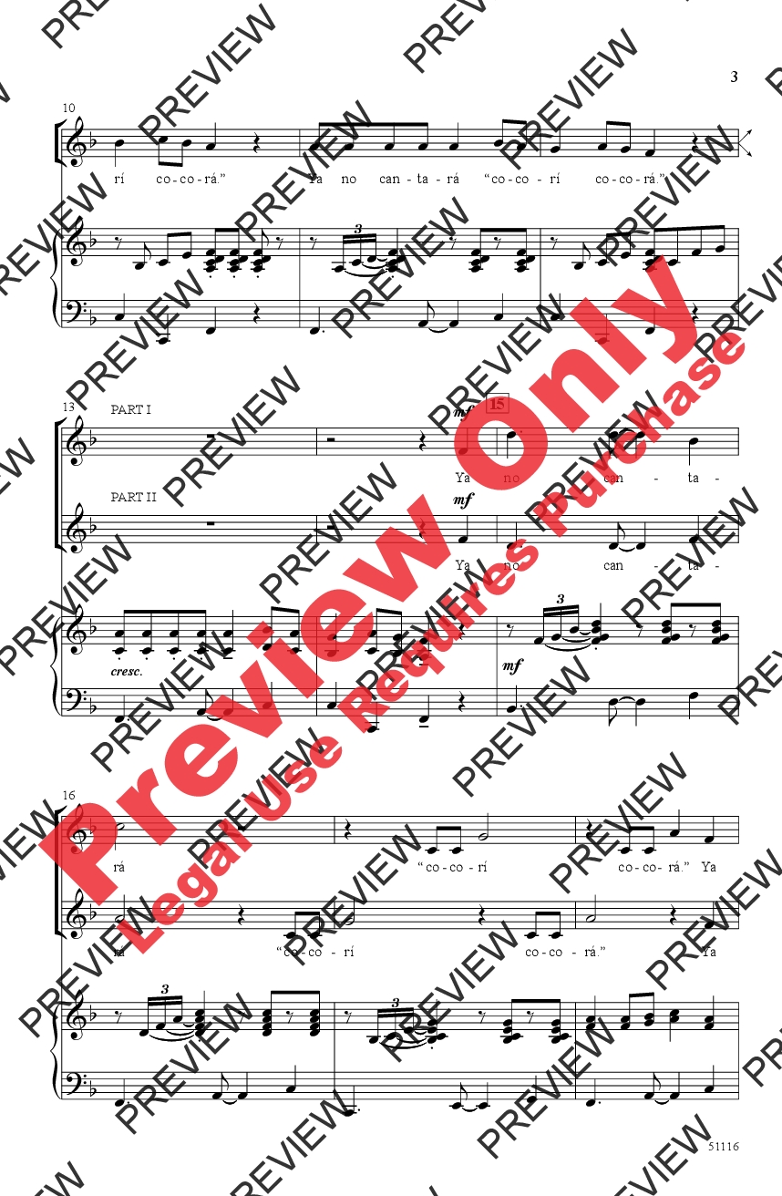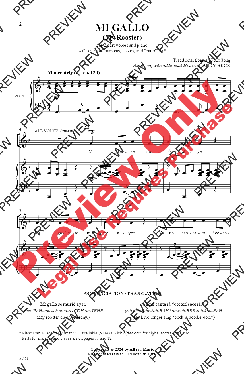 Here's a lighthearted folk song from Spain that's a breeze to learn and a pleasure to sing! The small-range melody is presented first in unison and then in canon. A simple ostinato adds another layer to the third verse before closing with echoing rooster calls—“Cocorí, cocorá!” Maracas and claves parts are included, or improvise your own percussion. There are only ten Spanish words in all, but if you need it, a pronunciation/translation guide is included.