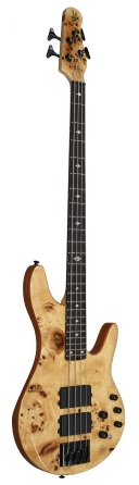The Pinnacle 4 is designed for bass players who demand an eye-catching instrument that delivers an enormous range of sounds. Thoughtful design details created an evenly balanced instrument which feels comfortable whether you play standing or sitting. The deep cut lower horn offers easy access to the upper reaches of the neck. The swamp ash body provides a balanced tone and the ornately-burled poplar top gives the instrument a distinctive look. Maple and walnut are layered to create a rock-solid five-piece neck, and the slim shape inspires confidence while performing. Diamond inlays and glow-in-the-dark side markers add a special touch to the rich ebony fretboard.