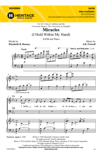 This superb original selection for SATB or SSA choirs is a solid concert and contest choice. The stunning, freely-written music serves to enliven the poet’s insightful reflections on the wonders of life and our place within it.