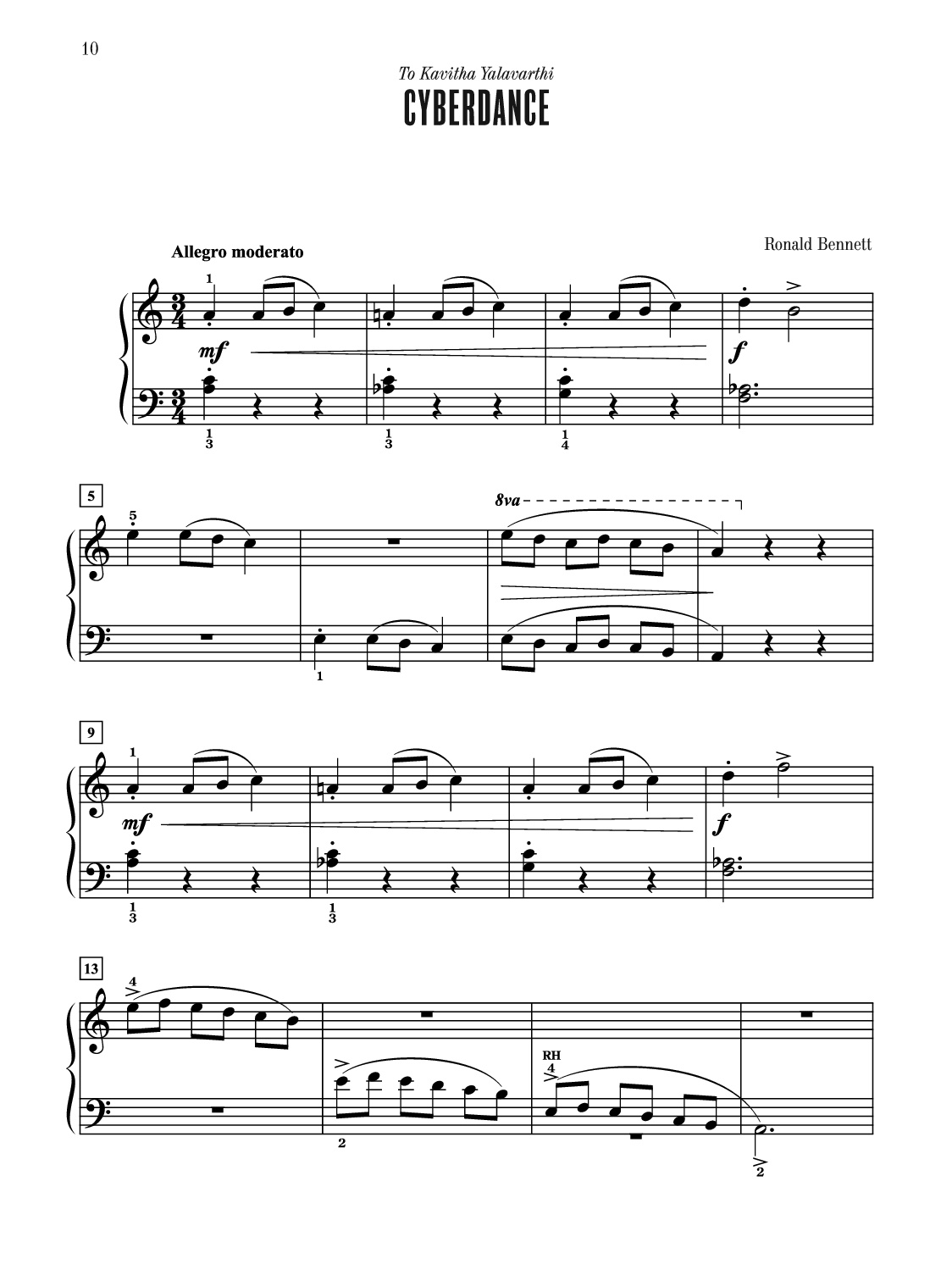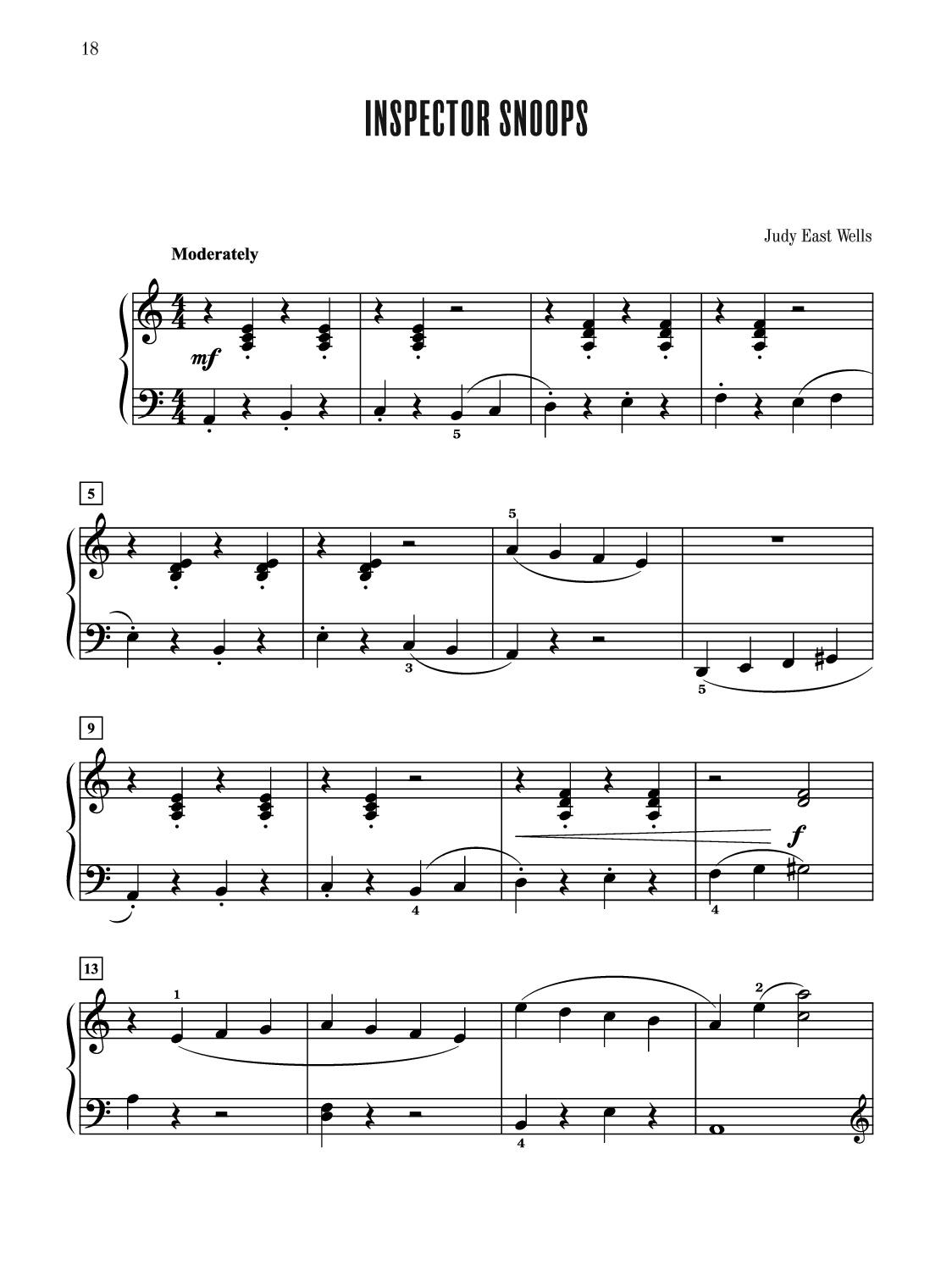 Book 2 includes pieces appropriate for late elementary to early intermediate students. Reading range is expanded above and below the grand staff, and mobility around the keyboard is required. Other challenges include simple applications of the damper pedal and easy eighth-note passages.