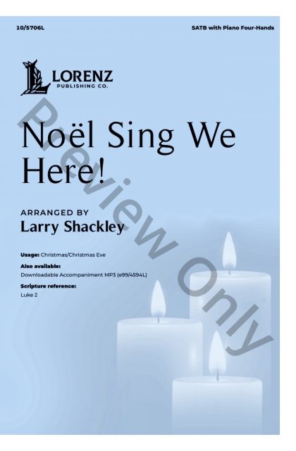 Larry Shackley has brilliantly arranged two famous carols, Sing We Now of Christmas and Masters In This Hall, for SATB choir and piano four-hands. This piece will be the “showstopper” moment of any Christmas concert or festival. Larry's penchant for writing exciting piano accompaniments is on full display, and each section of your choral ensemble is featured in always shifting vocal combinations. A two-hand accompaniment is also available. This one is not to be missed!