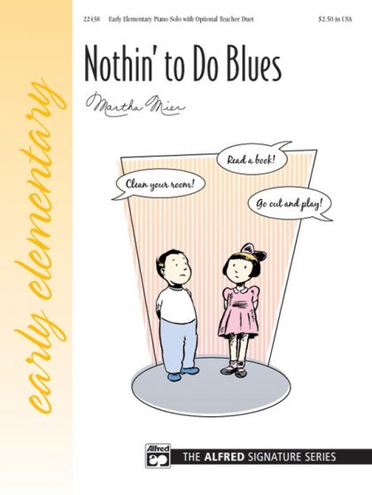 Any young child who has ever complained about having “nothing to do” will relate easily to the lyrics of this blues solo. The single-line melody, written in 4/4 time and in Middle C position, is divided between the hands. Accidentals occur throughout the piece in both treble and bass clef. These accidentals, coupled with a moderately slow tempo, help to create an authentic blues sound. The optional teacher accompaniment provides a rich harmonic background and an opportunity to emphasize a steady tempo.