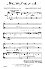Now Thank We All Our God is a moving Thanksgiving choral piece for mixed SATB chorus and piano. Its gracious and contemplative mood make it ideal for sacred settings at any time of the year. Featuring easy vocal parts and intermediate piano accompaniment, this choral piece can be adapted to various mixed chorus settings, including SB, SAB, ST, SAT, and STB.
