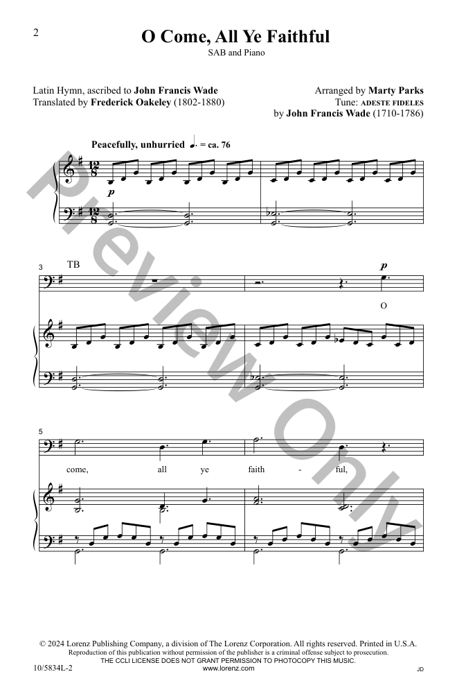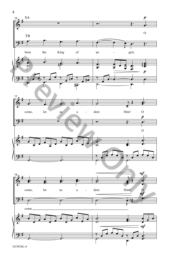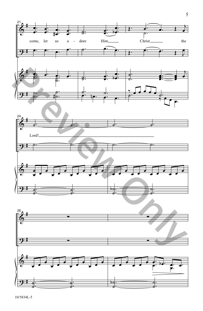 Veteran composer Marty Parks takes an intimate approach in this arrangement of a beloved carol. The music, set in 12/8 and gently propelled forward by the piano accompaniment, invites the listener to come and kneel before the Christ Child in quiet awe and wonder. This Singable Solutions anthem features carefully crafted SAB vocal writing and can be easily learned by any choir.
