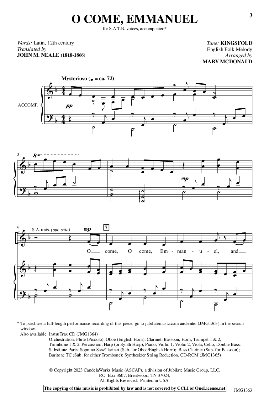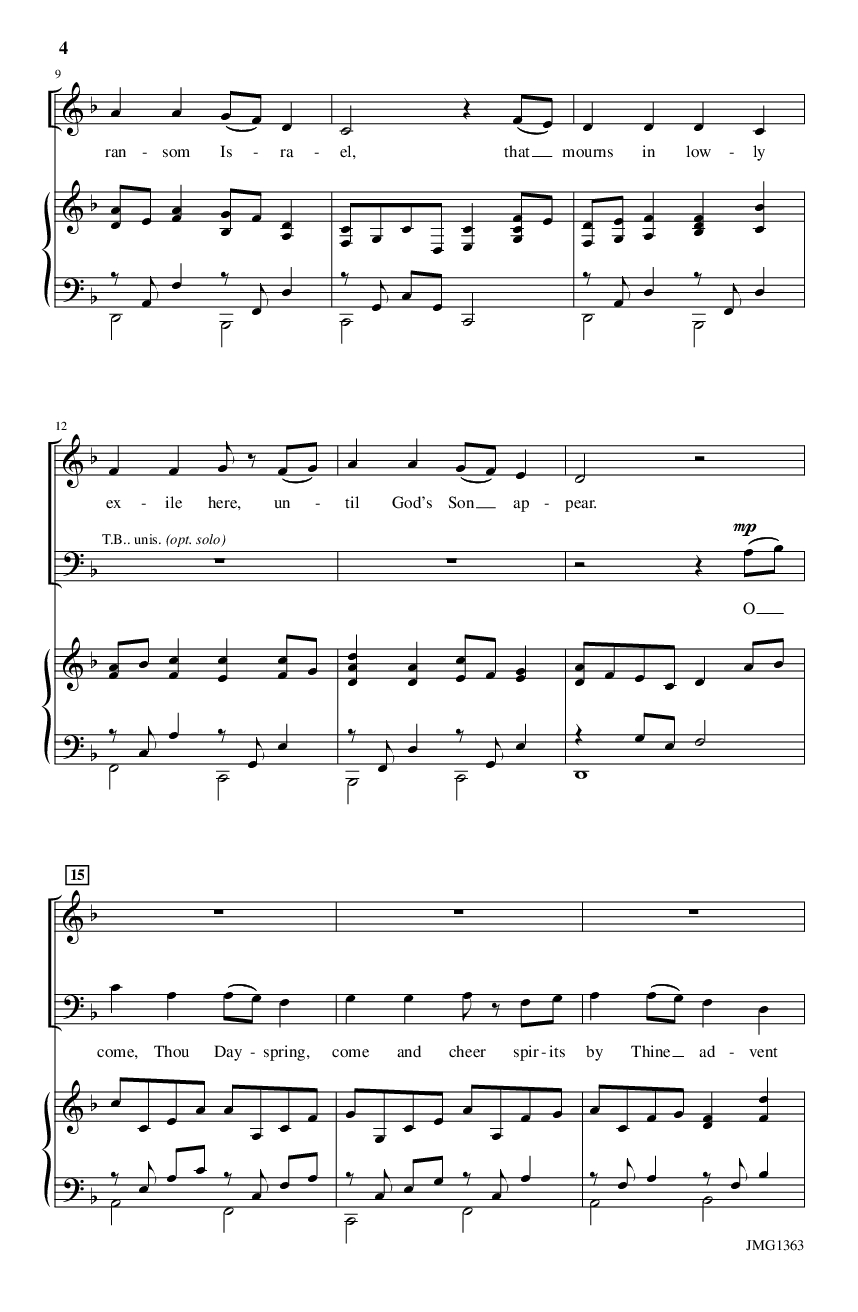 Opening with an optional duet, this piece presents a song of pure longing for Emmanuel's arrival. It builds slowly and steadily, then tapers to a hushed conclusion. Pairing the gorgeous KINGSFOLD tune with a beloved Advent text is creative and inspired, resulting in an unforgettable Advent offering.