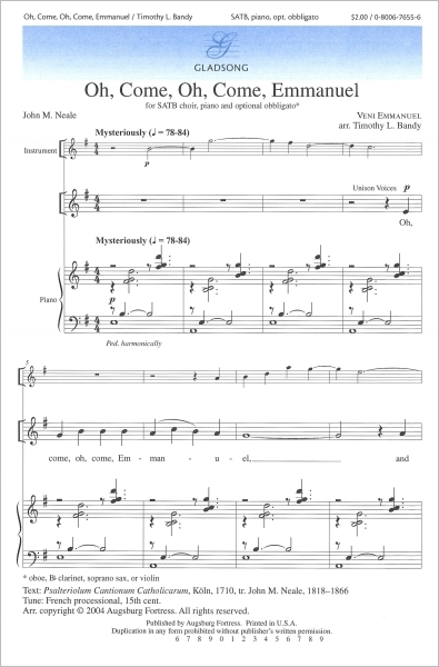 No Advent season would be complete without “Veni, Emmanuel.” Bandy's setting is perfect for either a traditional or contemporary service. The choral writing is simple and straightforward while the keyboard and optional C instrument add an ethereal quality.