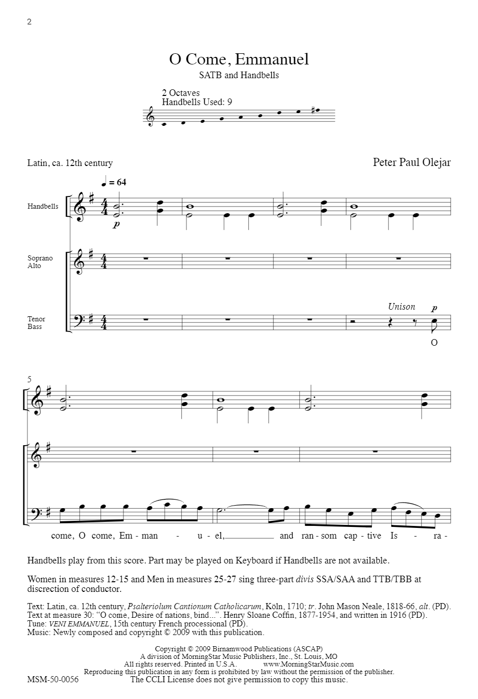 O Come, O Come, Emmanuel – SATB and Handbells or Keyboard
