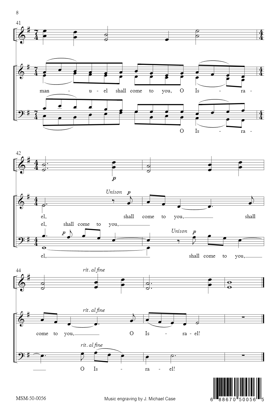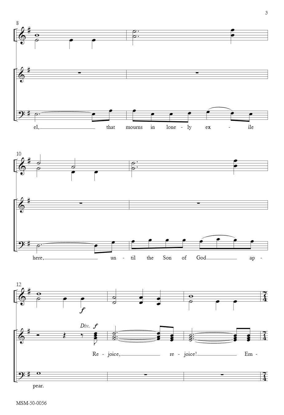 This arrangement includes an easy but effective handbell accompaniment that enhances the beautiful sense of longing found in the beloved 15th century tune Veni Emmanuel. The arrangement draws the congregation into the ancient yearning for and rejoicing in the Messiah. The bell part calls for 9 bells or handchimes, but could be played effectively on a keyboard if bells are not available. Bells play from the choral score.
