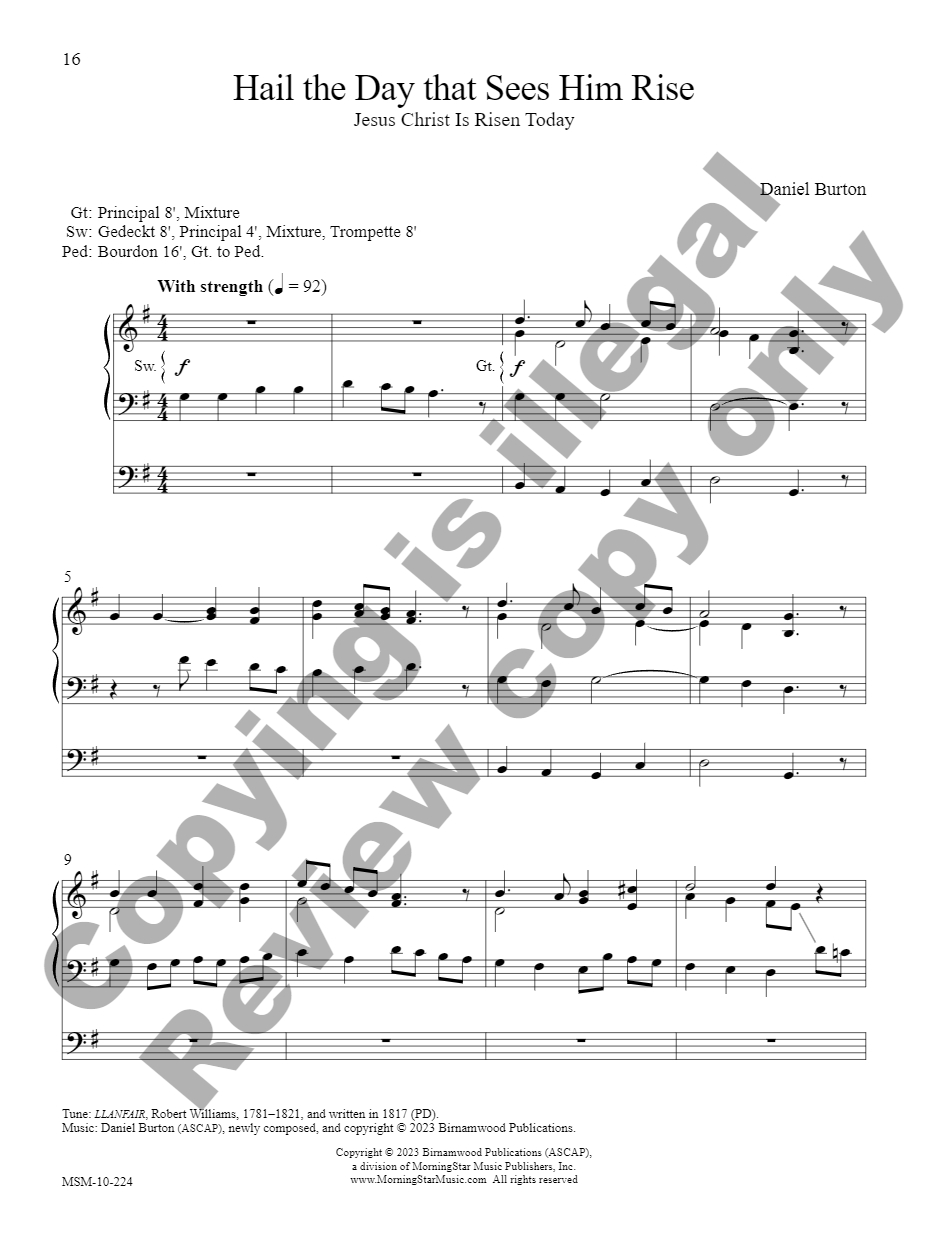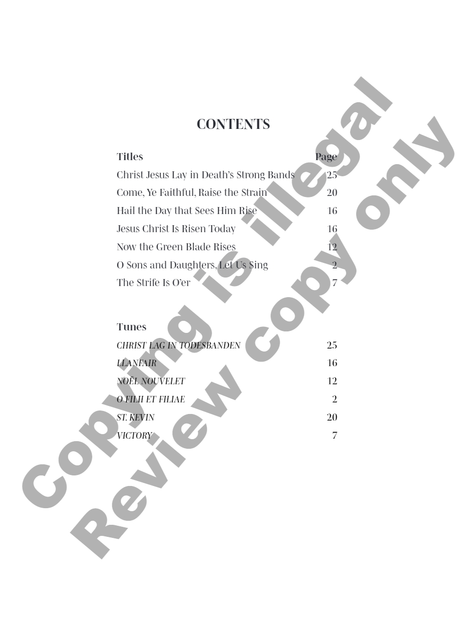 A collection of 6 festive settings of Easter hymns that may be used throughout the Easter season.