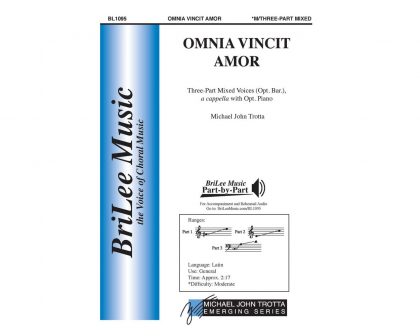 This energetic revoicing of Michael John Trotta's Omnia Vincit Amor is intended as an accessible piece for developing and emerging choirs. Whether accompanied or a cappella, there are many opportunities to focus on form, articulation, phrasing and Latin diction, making “Omnia Vincit Amor” a wonderfully teachable piece. One of the first pieces in the Michael John Trotta Emerging Series, this composition is sure to be a favorite of choirs and audiences alike.