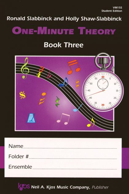 With the One-Minute Theory series, teaching the essentials of music theory has never been easier, saving valuable rehearsal time. And now, One-Minute Theory Book 3 has arrived! Finishing where Book 2 left off, Book 3 advances students knowledge with the introduction and application of diminished and augmented intervals and triads; natural, harmonic, and melodic minor scales, triads in root position, first inversion, and second inversion; triplets and additional vocabulary.