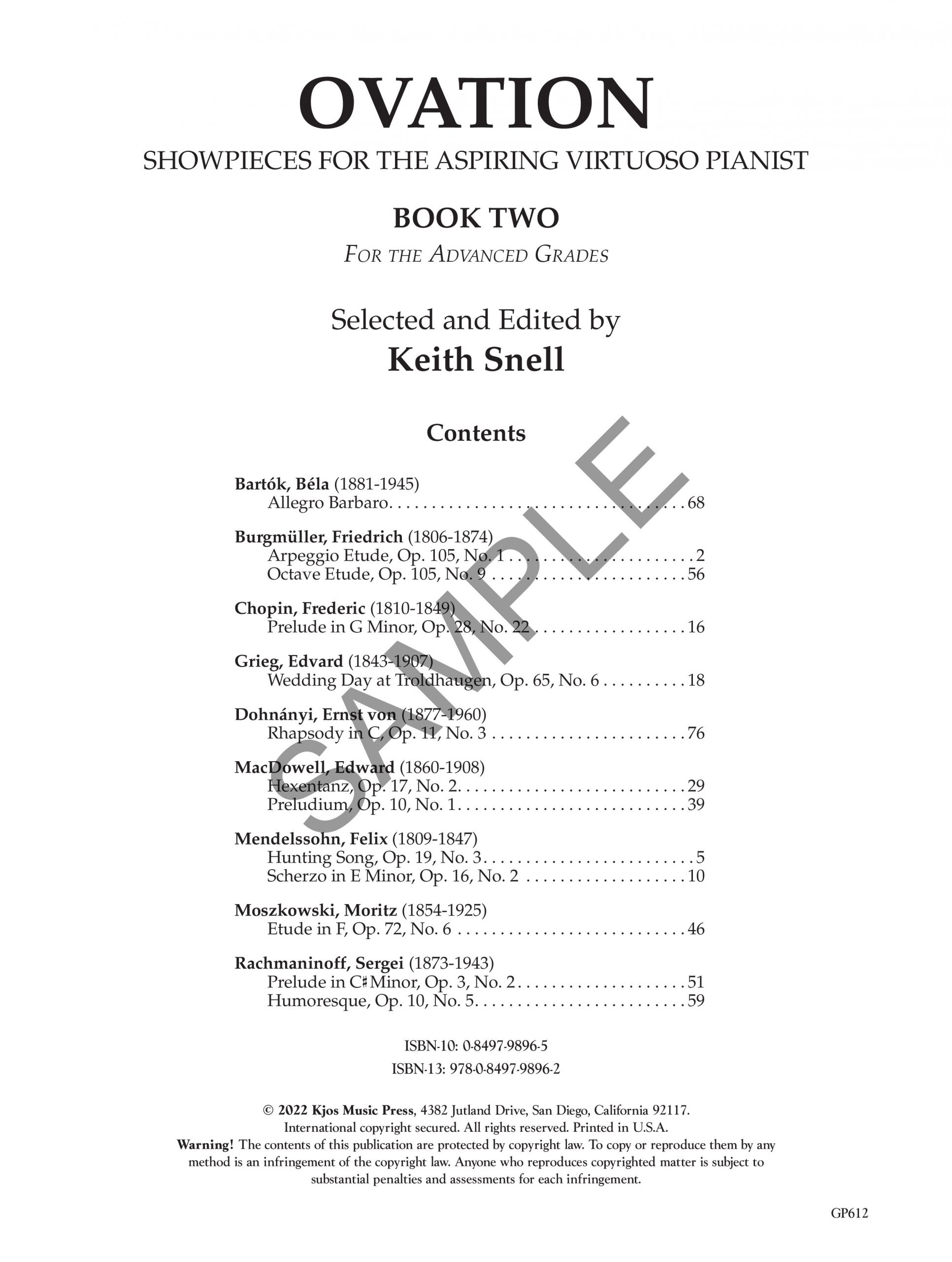 “Showpieces” provide opportunities for pianists to display their skills and elicit the “Wow!” response from an audience. The anticipation of acquiring virtuosity is highly motivating for piano students because there is a special thrill in experiencing the sound and feel of playing showpieces, as well as having the admiration of listeners! The music of Ovation, Books 1 and 2 was selected with this in mind.