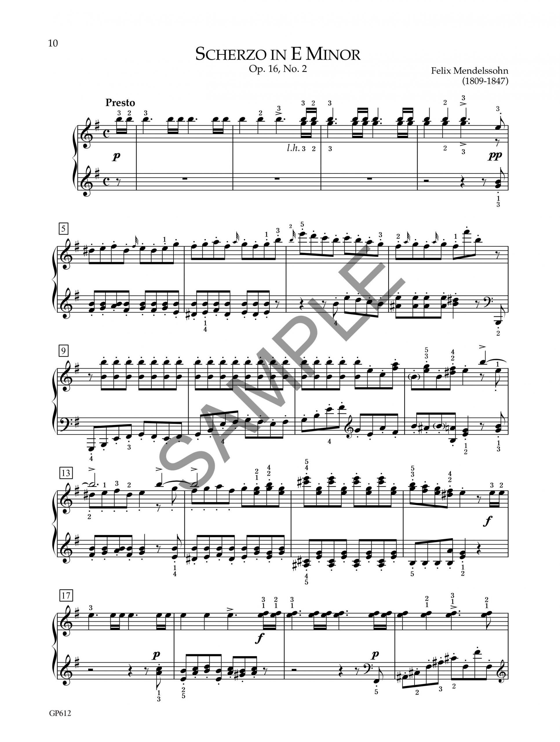 Music by Felix Mendelssohn, Frederic Chopin, Edvard Grieg, Edward MacDowell, Ernst von Dohnányi, Sergei Rachmaninoff, Béla Bartók, Friedrich Burgmüller, Moritz Moszkowski.