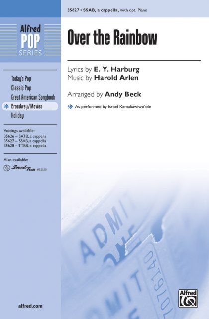 Israel Kamakawiwo'ole's Hawaiian-style “Over the Rainbow” has become a prevalent part of today's popular music. Performed in Glee's first season finale by Matthew Morrison and Mark Salling, the unique setting has been sung by several American Idol contestants and featured in many TV shows and movies. In this creative arrangement, a divisi choir accompanies the soloist, duet, or small group, performing a cappella or with optional piano, ukulele, or guitar.