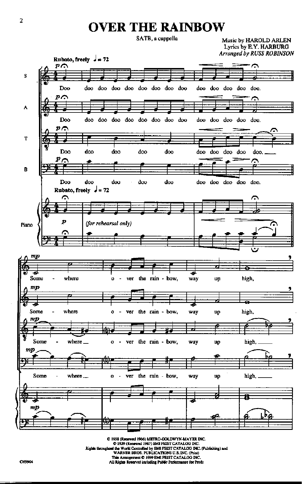 Russ Robinson brings us a very singable a cappella setting of this all-time classic from “The Wizard of Oz.” The 1998 theatrical release of the movie created a whole new wave of interest in this wonderful music.