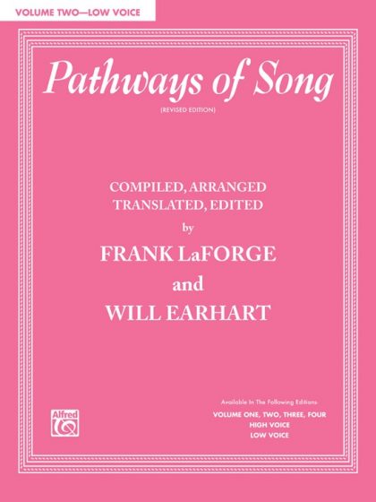 The Pathways of Song series offers concert songs in easy vocal ranges for the voice student, by composers such as Schubert, Brahms, Handel, Bach, Mozart, Beethoven, and Haydn. The series includes representative repertoire, with English translations and piano accompaniment.