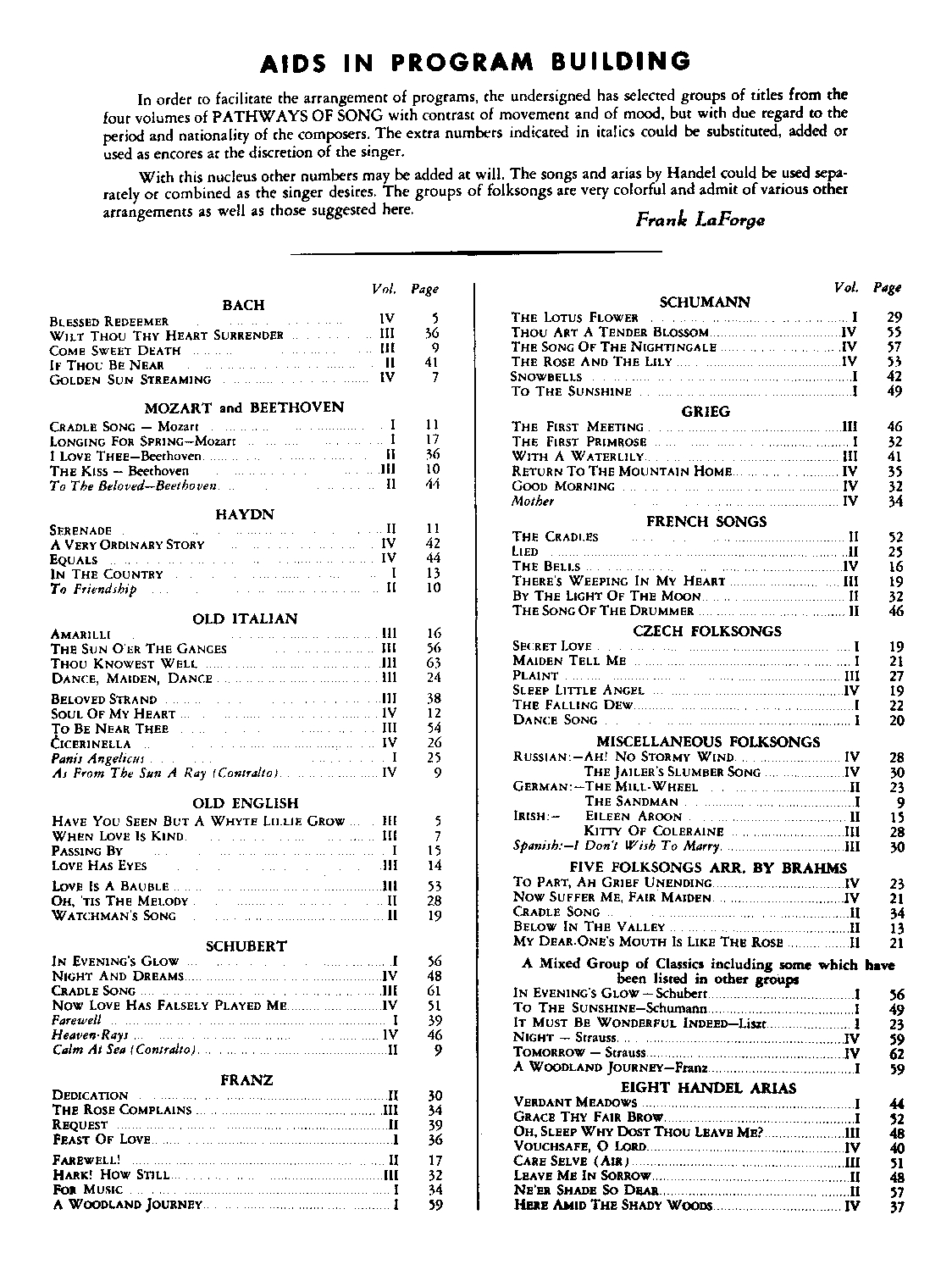 • Compiled, arr., translated, & edited by Frank LaForge & Will Earhart