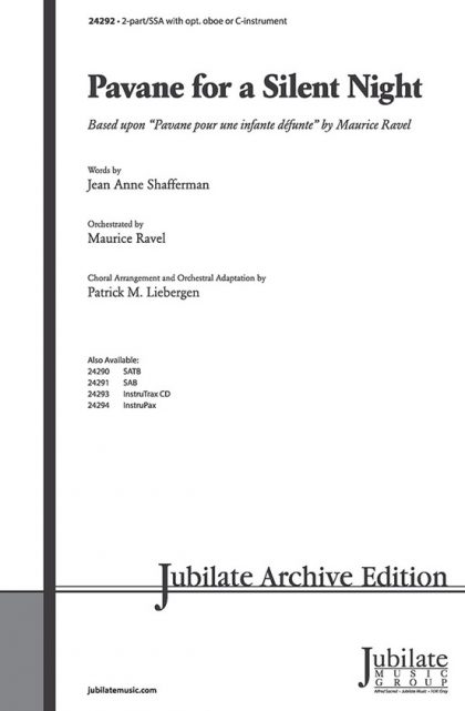 Absolutely beautiful! Pat Liebergen has arranged Ravel’s timeless masterpiece, Pavane pour une infante défunte, for choir, and adapted Ravel’s orchestration for oboe and strings as optional accompaniment. Jean Anne Shafferman has added a Christmas text that is simply stunning: “On a silent, starry night, Christus natus est.” Certain to be the highlight of school seasonal concerts and Christmas worship, it is available in three voicings for singers of all ages.