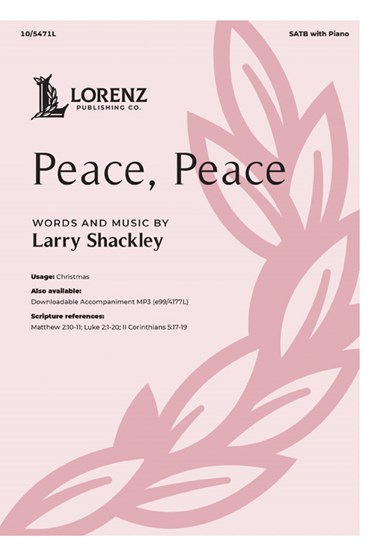 Based on a serenely beautiful Swedish Christmas song, Larry Shackley's “Peace, Peace” invites us all to worship at the manger and receive the gift of forgiveness through Christ. “Come, come worship the Lord, lay all your gifts before Him. Gold and sweet incense are only a part; what He wants most is the gift of your heart.”