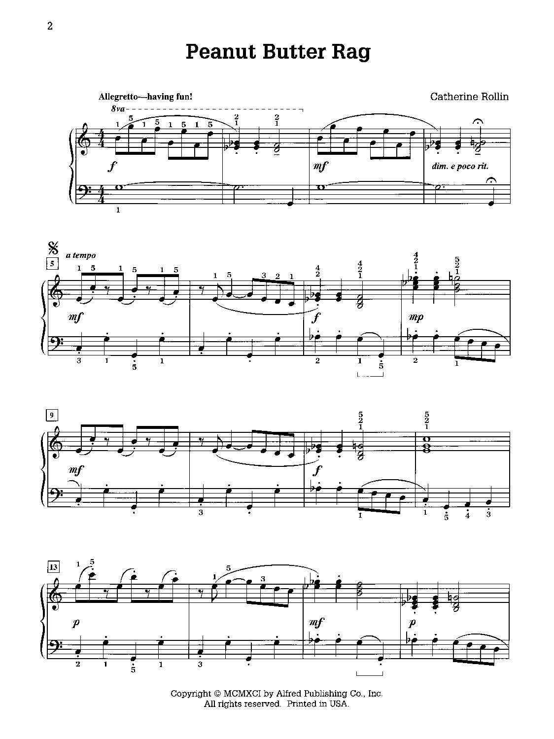 “Peanut Butter Rag by Catherine Rollin is an addictive intermediate-level solo . . . This spirited rag is a delight. Students truly find this piece hard to put down, and I enjoy playing it as much as they do.”– Carmen Doubrava, Clavier Companion