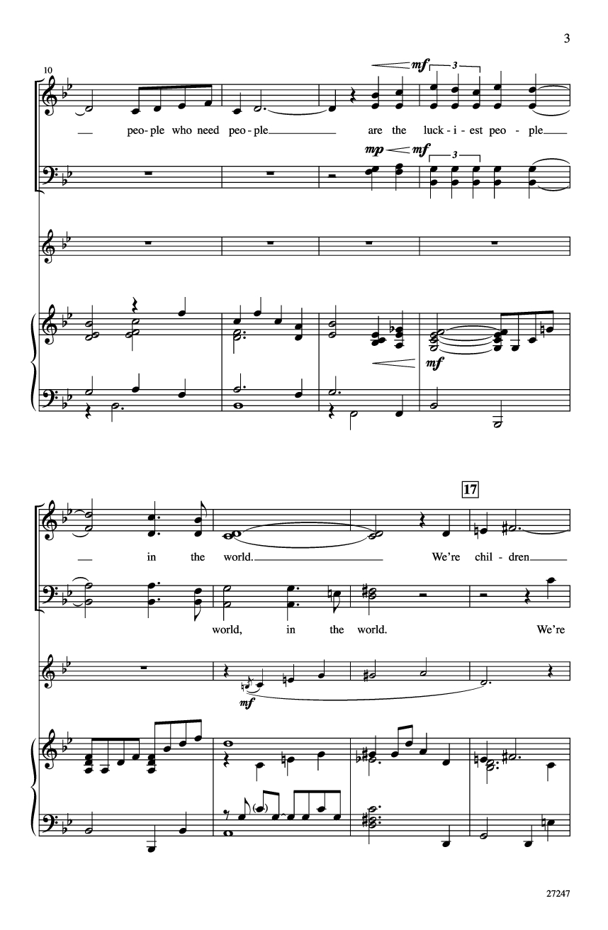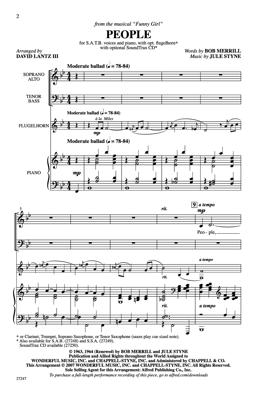 A stylish arrangement of a classy song from the musical Funny Girl. The optional flugelhorn is a brilliant addition to a very rich and performable arrangement. And the well-known lyrics are special:
