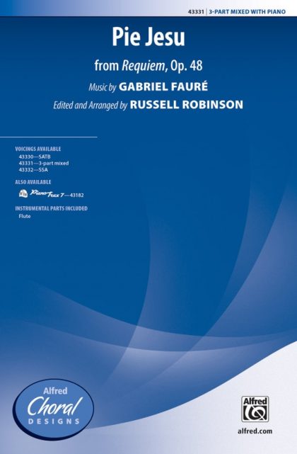 This esteemed classic has been recorded by world-famous soloists such has Kiri Te Kanawa and Renée Fleming. Now, choral groups can perform Fauré's beautiful music with Dr. Robinson's well-crafted, smartly-edited arrangement. Features a piano and flute accompaniment, well within the reach of student players.