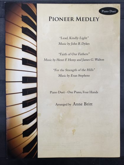 A moving piano duet medley in honor of the pioneers of The Church of Jesus Christ of Latter-day Saints. This arrangement opens with “Lead, Kindly Light,” portraying a sense of weariness from the difficulties of trail life and a desperate need for divine guidance. The mood turns more hopeful as the primo part continues “Lead, Kindly Light” while the secondo part moves into “Faith of Our Fathers,” and finally comes the joyful expression of gratitude and praise with “For the Strength of the Hills.” One piano, four hands. Primo and secondo parts are both intermediate level in difficulty.