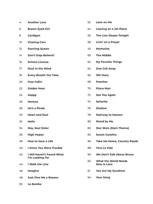 No matter your age or if you're at the very start of your piano journey, you can play the 49 favorites in this collection! Each song is presented in arrangements with no page turns, simple right-hand melody parts, letter names written inside each note head, and basic left-hand chord diagrams.