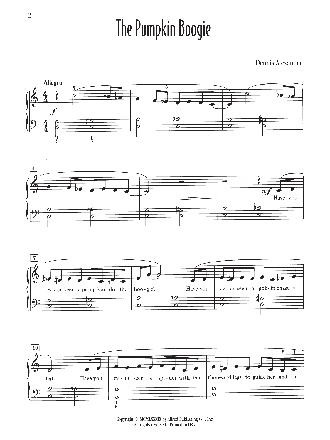 Here is a great Halloween recital piece for the late elementary student, featuring accidentals, some appropriately spooky lyrics, and a C-major key signature that is modified throughout the song for “boogie” harmonies and a ghostly mood.