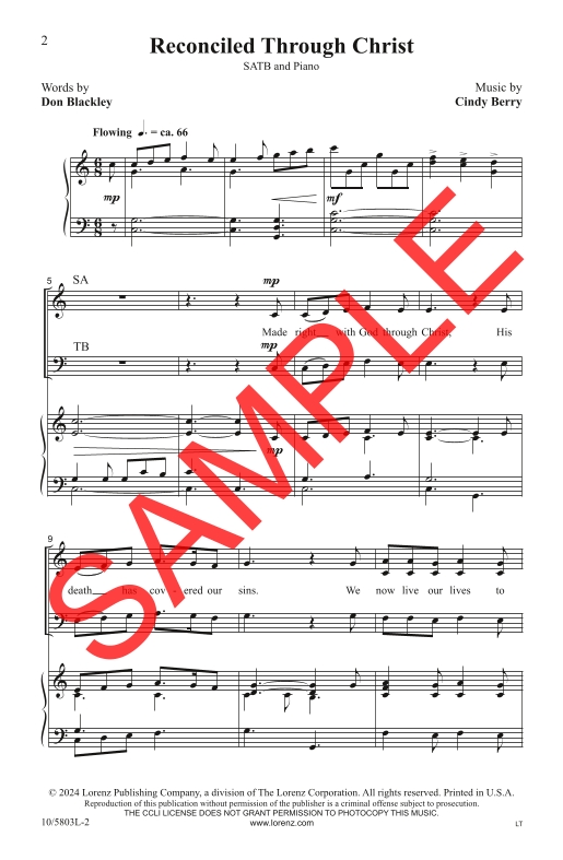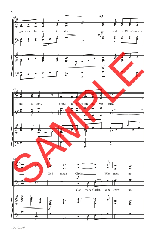 Don Blackley and Cindy Berry’s celebratory piece is an appropriate addition to mission-focused Sundays as well as general worship services. Set in a buoyant 6/8, the tuneful melody practically leaps off the page, and Don’s lyric will inspire listeners to spread the good news of Christ with their friends, families, and neighbors.