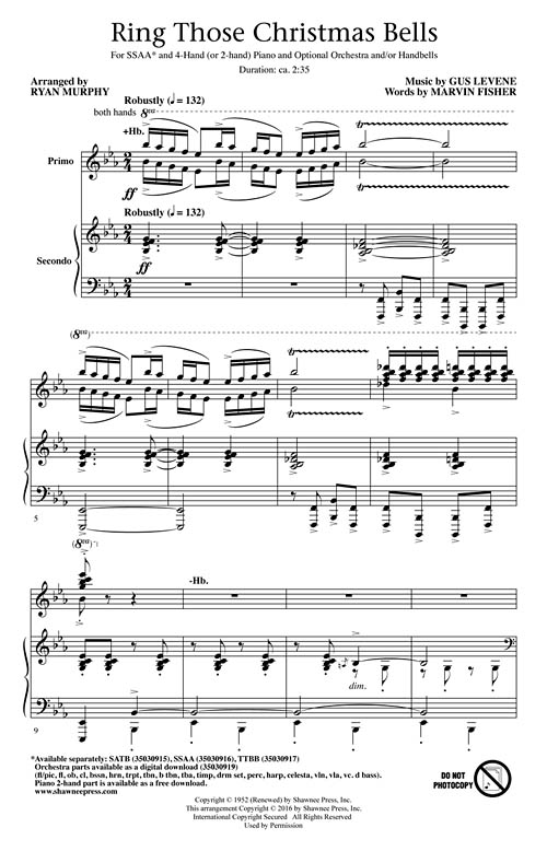 What a stunning arrangement for the holidays! Happy, holiday bells! Fred Waring and his Pennsylvanians first performed this showstopper. Now you can sing and enjoy hearing this new arrangement for chorus and four-hand piano accompaniment, including optional handbells and orchestra, performed by the Mormon Tabernacle Choir! It will light up your holiday concert and certainly bring the house to its feet!
