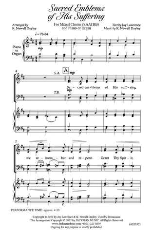This worshipful original composition, centered on the Savior and His Atonement, is a beautiful musical centerpiece for sacrament meetings. Written and arranged by K. Newell Dayley and Jay Lawrence for SAATBB chorus and piano or organ. It was awarded Special Recognition in the Church Music competition (2022).