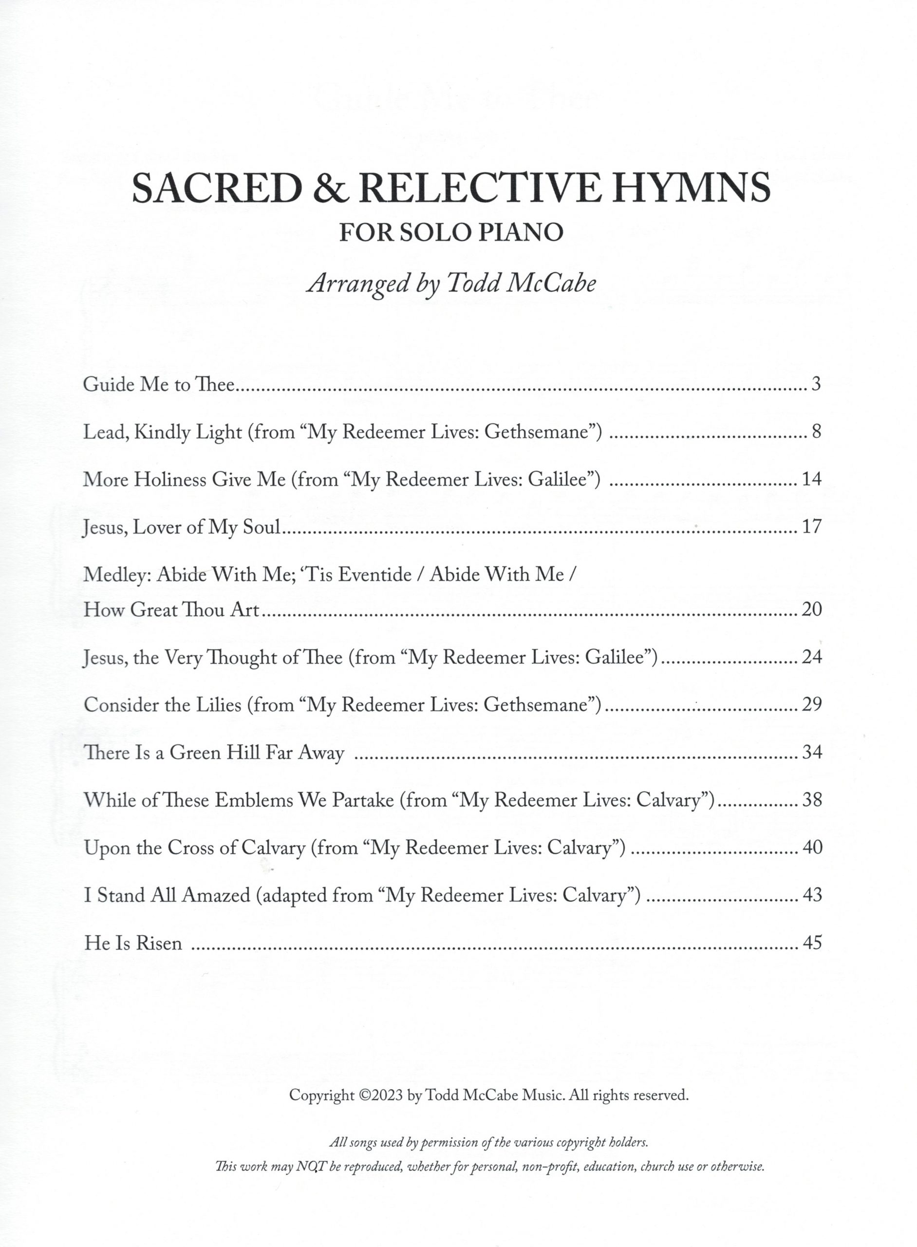 Experience these contemporary arrangements of sacred and reflective hymns for solo piano. This poignant and sensitive collection of beloved hymns creates peaceful, vivid, and serene environments, providing the perfect backdrop for personal reflection and contemplation of our Savior, Jesus Christ. Let his music inspire your faith and immerse you in the profound love and grace of Christ.