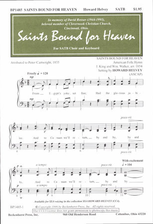 Available in TTBB voicing in the collection Saints Bound for Heaven. Also available for SSA in the collection SSA-Howard Helvey.