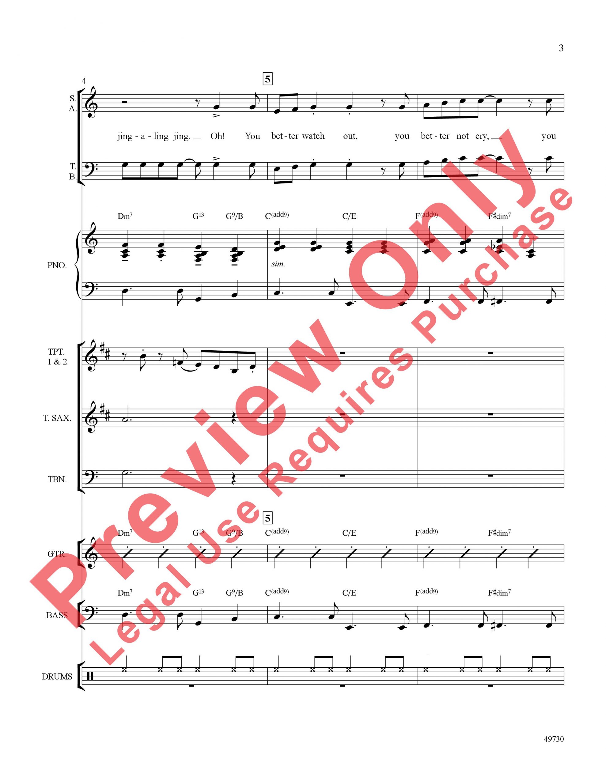 Jolly “jing-a-ling-a's” provide hip transitions and bright bookends in this jazzed-up version of the great Christmas standard. Kirby's arrangement fits the tune like a glove, and will last in your library year after year. Eight bars in the middle may be repeated as many times as desired, and opened up to include vocal and/or instrumental soloists, improvisation, scat singing, gradual stacking of written lines, etc. Just be sure to save a little something for the shout chorus that follows! SoundPax includes four horn parts, but easily adapts for rhythm section alone.