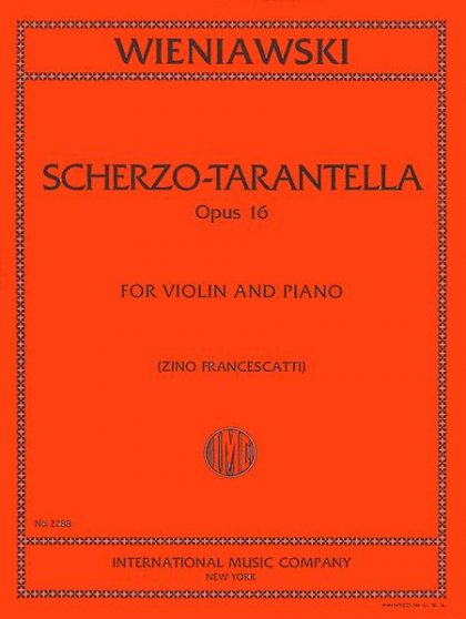 Scherzo was dedicated to Lambert Massart, a professor at the Paris Conservatory, who had been Wieniawski’s teacher. The work belongs to the category of virtuoso miniatures, but its character is less of a salon composition than Wieniawski’s other miniatures, such as Capriccio-Valse op. 7, or Romance sans paroles et Rondo élégant op. 9.