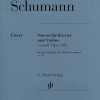 The famous, wonderful first of Schumann's three late violin sonatas, that in A minor op. 105, was written in just a few days in September 1851. In regard to publication of the present edition, violinist Florian Sonnleitner remarked that he loved to play this one so much because “very compact in form, and in the merciless key of A minor, it is one of the most direct mirrors of Schumann's inner life.” The Henle Urtext edition is based on the autograph and on Schumann's working copy of the first printing.