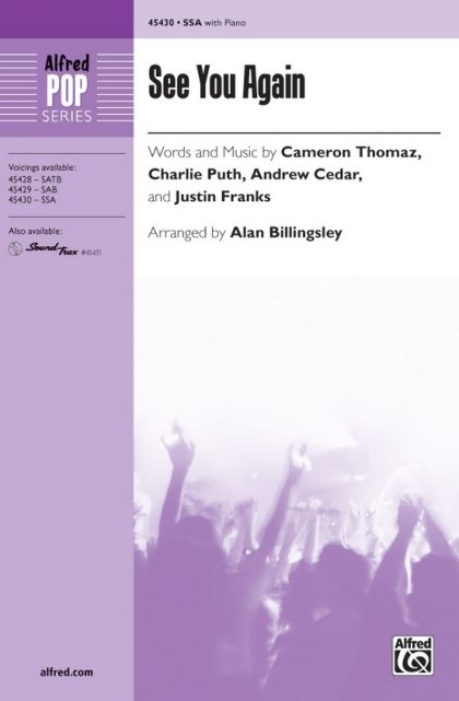 Featured on the Furious 7 soundtrack, this hip-hop ballad about the eternal bonds of friendship will inspire choirs and audiences alike. The reflective character of the popular single originally recorded by Wiz Khalifa and Charlie Puth emanates in this arrangement that starts with a delicate solo and builds to full harmonies. A moving addition to any concert!