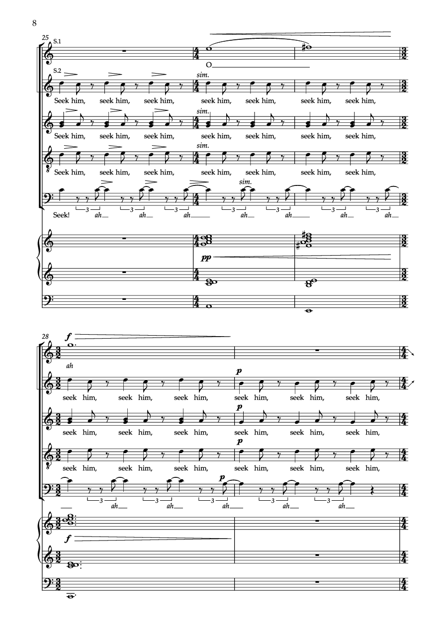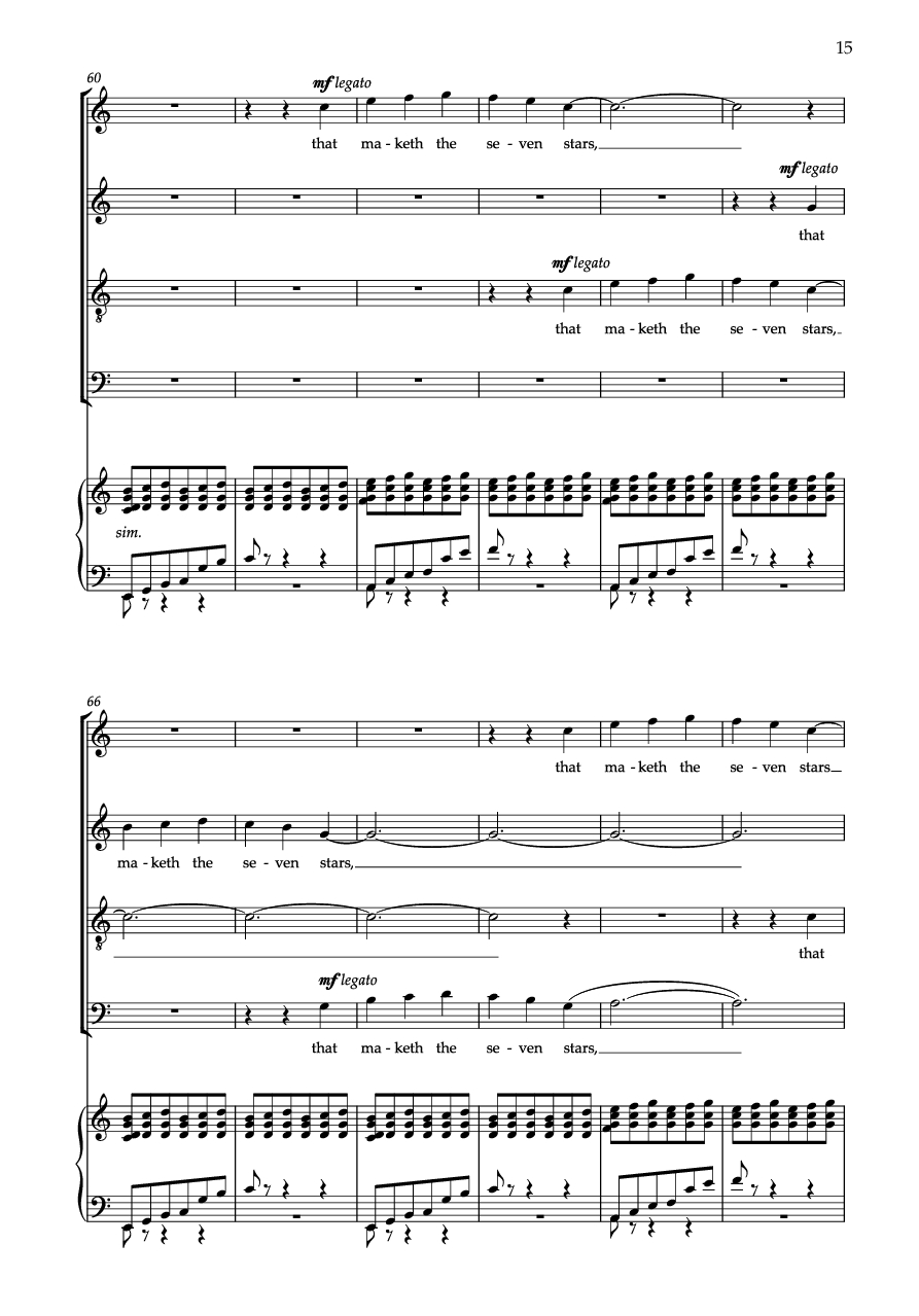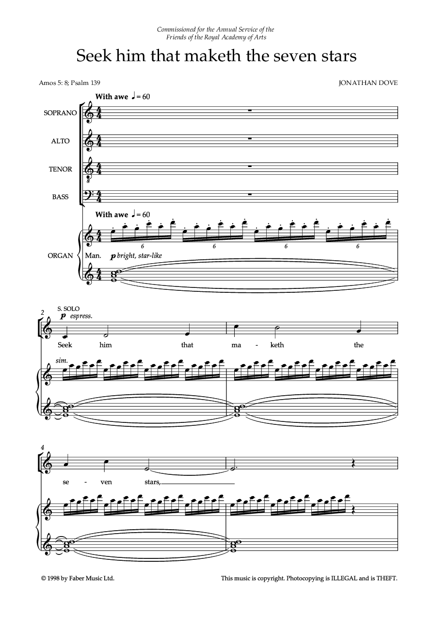 A joyful, uplifting setting of Psalm 139. The organ part, with its sparkling use of high registers, subtly evokes the stars. This exquisitely complements the careful sculpted vocal lines.