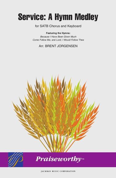 Medley arranged for mixed chorus (SATB) and piano, of service-related hymns. Including first-verse arrangements of “Because I Have Been Given Much,” “Come Follow Me,” and “Lord, I Would Follow Thee”.