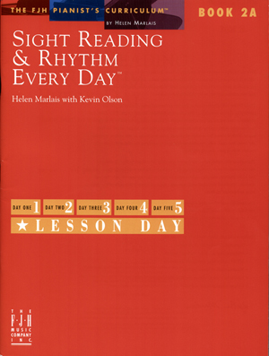 In the Every Day plan for Book 2A, students learn: key signature recognition, how to count rhythms that include eighth notes, interval and pattern recognition through major and minor five-finger patterns, and single-line music played between the hand; immediate response to staccato and legato articulations, and dynamics, beginning transposition