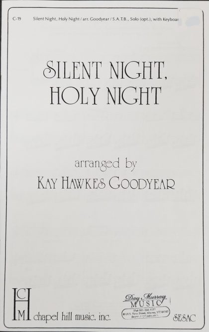 “Silent Night” is a popular Christmas carol that originally came from Austria. Goodyear's arrangement of the English version is moderate in pace and based on “Siciliano” from the 2nd flute sonata by J.S. Bach.