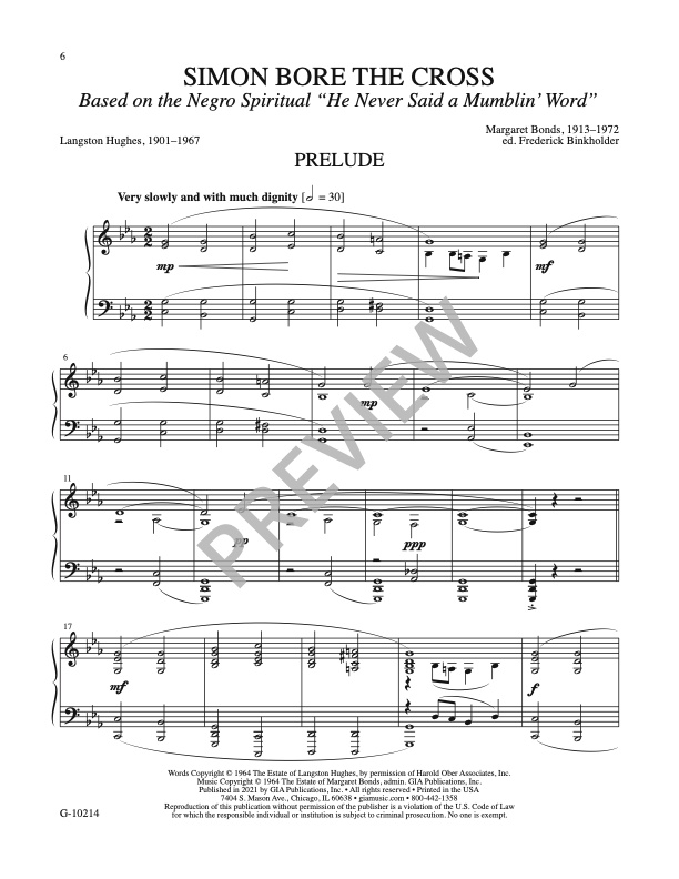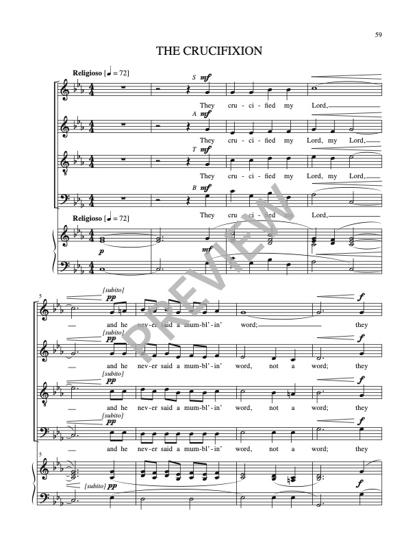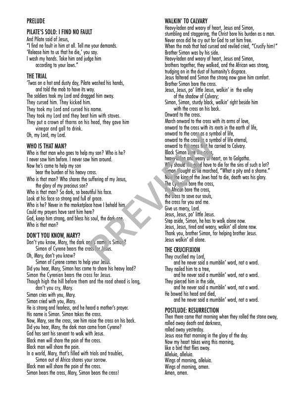 The Langston Hughes text pulls into sharp focus individuals of African descent who were integral components of the gospel story. The themes of racial equality and understanding underscore the friendship and lifelong working relationship between Bonds and Hughes.