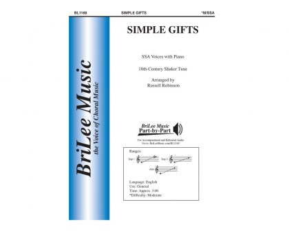 Robinson's playful arrangement of this beloved Shaker tune is rhythmically diverse, has interesting harmonies, varied melodic pairings and a supportive yet interesting accompaniment. Simple Gifts is sure to be a crowd-pleaser when performed by treble ensembles of all sizes!
