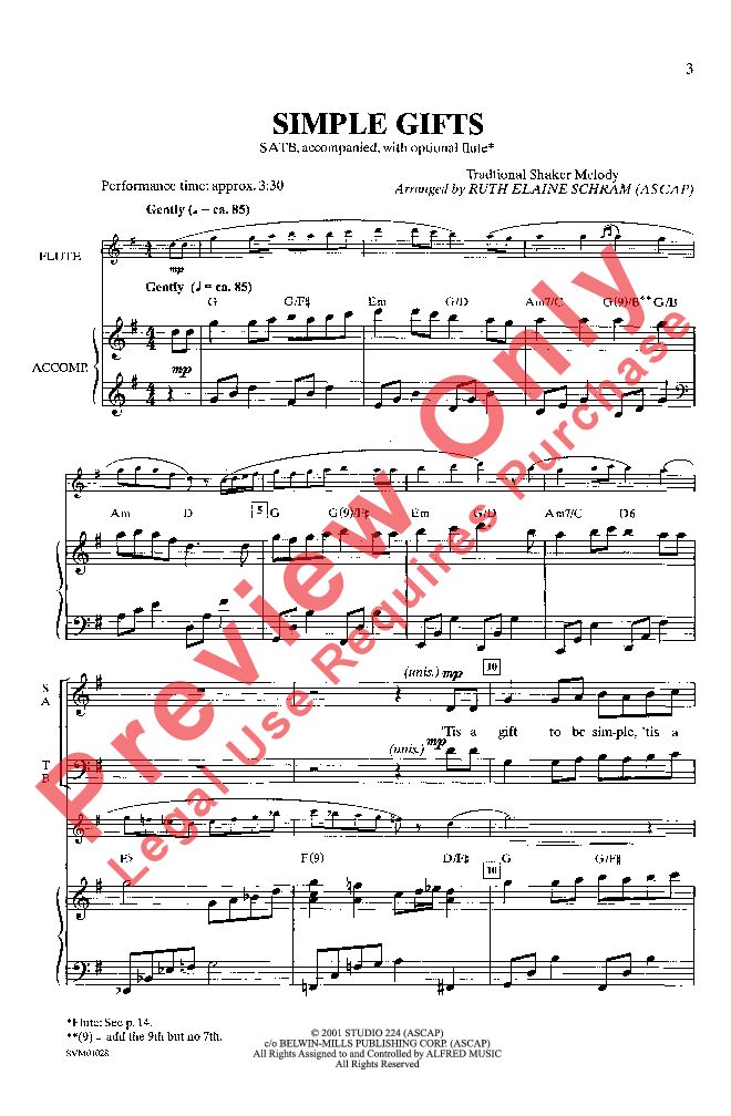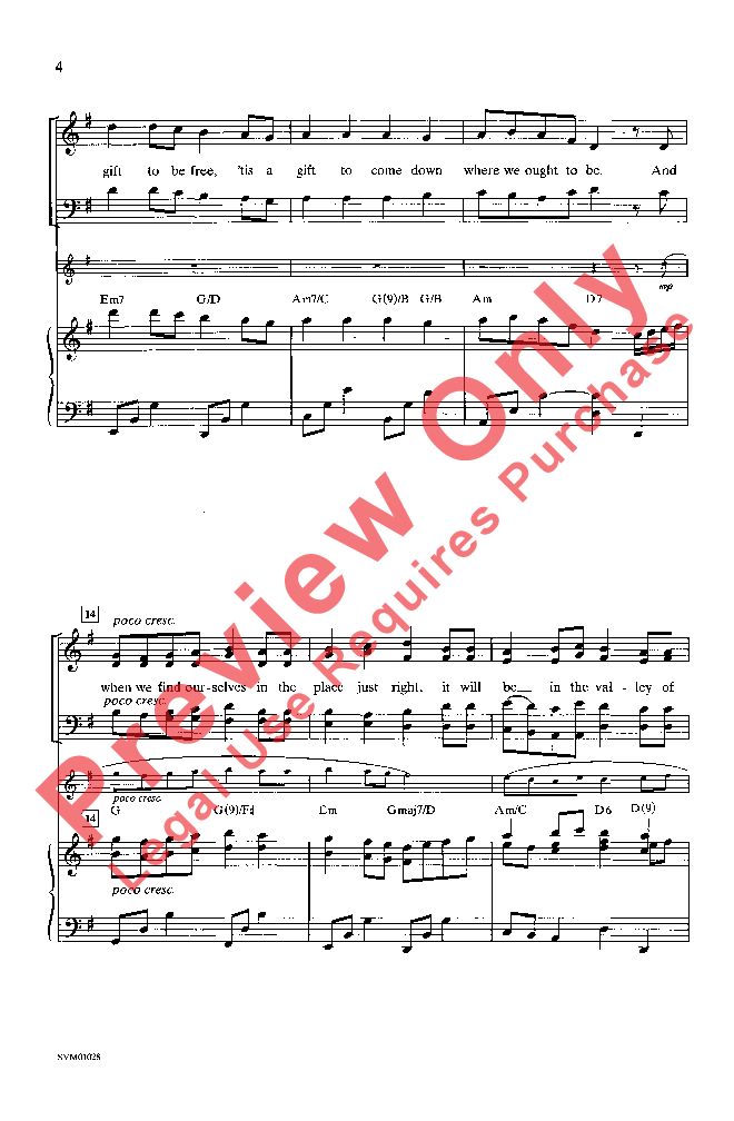 Extraordinary! Of the many settings of this beloved Shaker melody, none show such a distinct mastery of musical craftsmanship as this remarkably beautiful setting. Within the boundaries of simplicity and beauty dwells this stellar treatment for choirs in various voicings, piano, and optional flute accompaniment. Harmonies are rich without being overstated, and the full, supportive piano accompaniment flows easily under the voices. Tastefully and colorfully written.