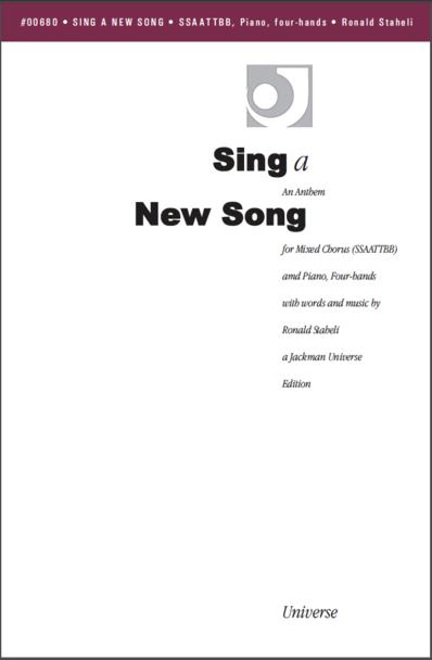 Original anthem arranged for mixed chorus (SSAATTBB) and piano, four hands: “Sing a new song unto God, praise His holy name! With gladdened heart and voice triumphant sing unto God.”