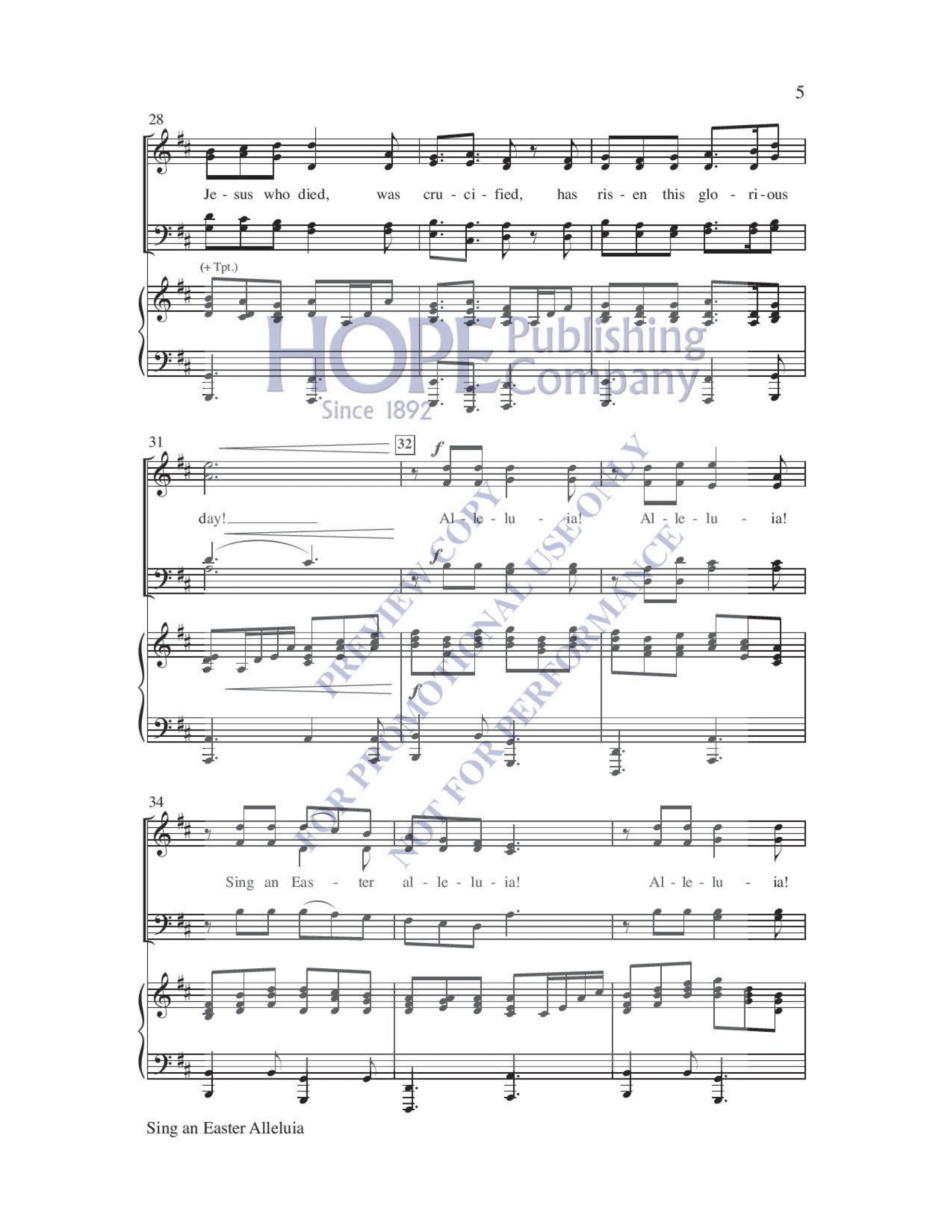 Celebrate Easter with this glorious celebration of the resurrection! Set for SATB voices in accessible vocal ranges with a glittering, optional, solo trumpet part, this is a bright addition to the Easter repertoire.