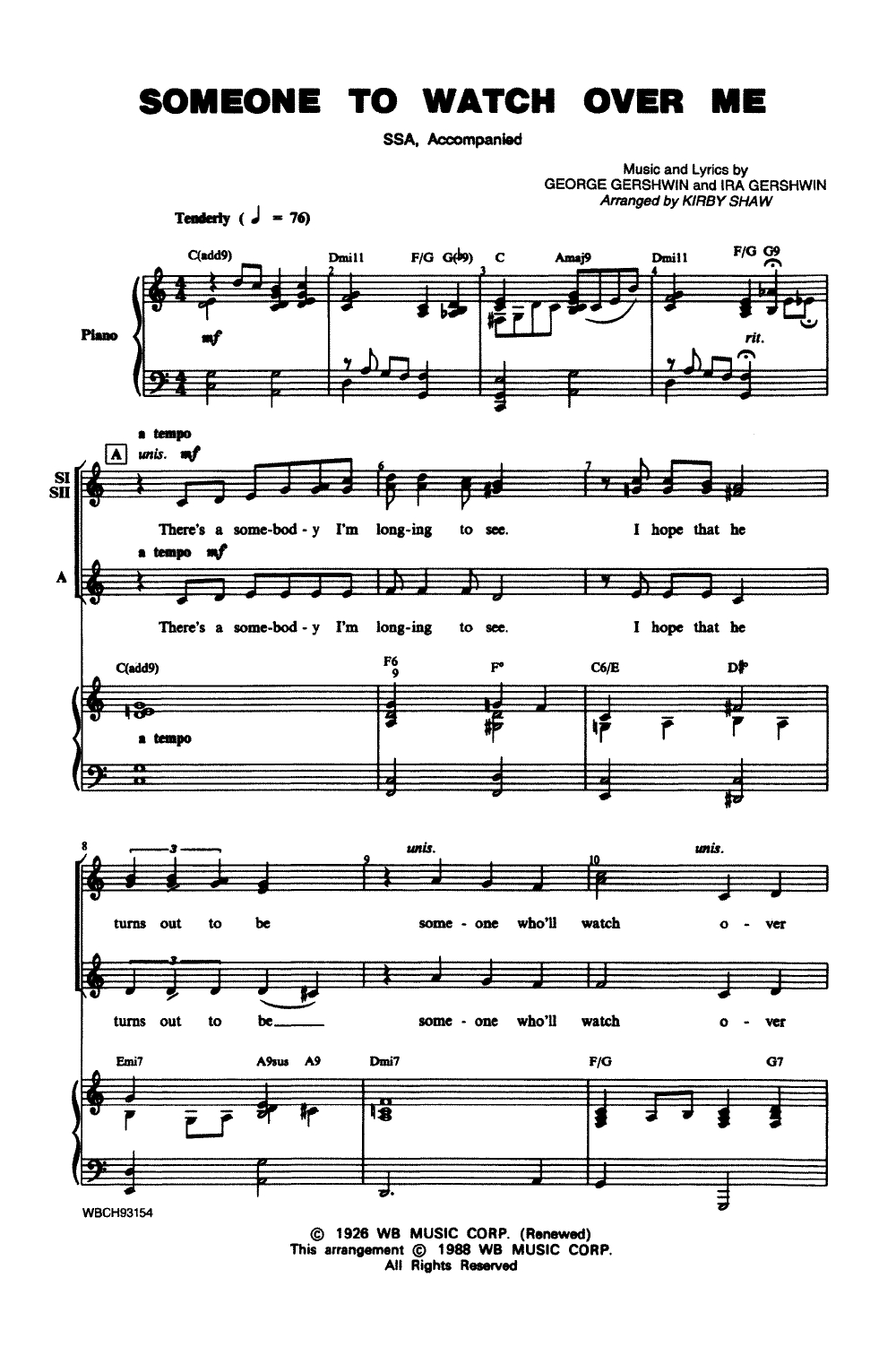 Someone/Watch Over Me – SSA (Shaw)