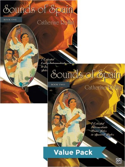 This Value Pack includes Catherine Rollin’s Sounds of Spain, Books 1-2. Striking images of Spain permeate these piano solos, making a lasting impression on all who hear or perform them. Explore many of the diverse dance and harmonic elements that make up the colorful Spanish music tradition. All are very manageable technically, yet contain dramatic sections that sound difficult and showy. Great crowd-pleasers!